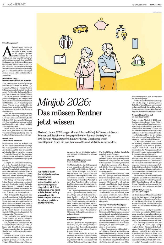 • Minijob 2026: Das müssen Rentner jetzt wissen